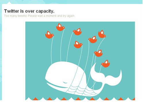 Que se passe-t-il dans cet univers virtuel? Je ne sais plus combien de fois, je me suis frappée le nez sur un Twitter « overload » avec sa grosse baleine annonçant la surcapacité du système encore lundi matin à 1oh45. Nous pourrions dire qu’ils vont tous mourir… oui mourir d’obésité morbide ces réseaux gonflables. Ils ne suffisent plus à leur propre succès.