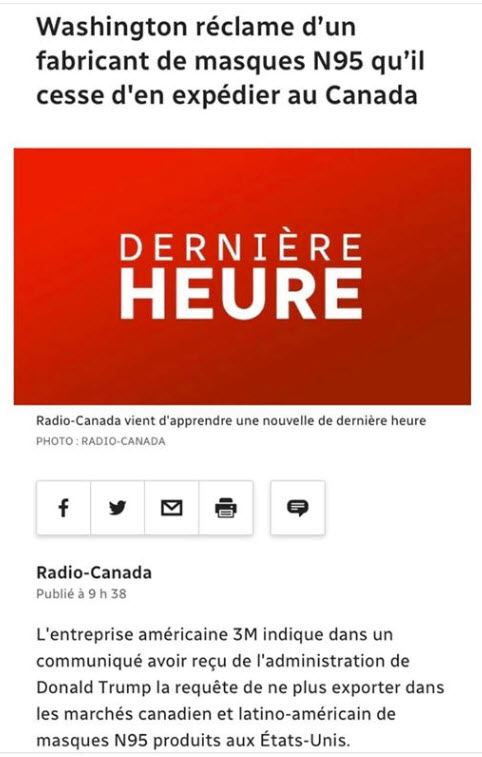 Le paysage d’affaires sera complètement changé et son imprévisibilité aussi. On ne parle même pas ici des guerres économiques qui risquent d’émerger ou de continuer de manière plus aiguë. Trump a bien commencé à nourrir les feux contre la Chine, l’Iran et j’en passe. Il a agit déjà comme un « bully » de premier ordre en exerçant une pression énorme sur le matériel médical après avoir dit que tout est « OK ». Il a même ordonné à 3M de cesser la distribution de masques. 3M a déjà riposté alléguant que cette « médecine américaine » risquait de se tourner contre eux. Comme on dit, il y a des limites à abuser des lois si des vies humaines sont en cause. La vie d’un américain vaut-elle plus que celle d’un canadien ou un mexicain, Trump dit oui!