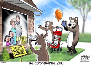 Nous n’avons jamais eu autant pour réfléchir, plusieurs tireront donc des conclusions importantes pour leur futur après cette retraite forcée. Comme le fait que nous n’ayons jamais eu autant de temps pour dépenser et nous sommes confinés, obligés d’acheter en ligne, en ligne même devant les épiceries. En tout cas, nous épargnons beaucoup, ça coûte cher les restos et les sorties finalement lol. Le taux d’inflation a fondu comme neige au soleil. Nous sommes tous devenus des adeptes du « locavorisme » du jour au lendemain comme des écoconscients excités par les visites-surprises des canards dans les cours, les faucons émerillons, les chevreuils, les dindons sauvages, et quant à moi, je me suis fait quelques amis parmi les tamias et les écureuils qui viennent me voir dans la fenêtre, comme si j’étais dans un zoo. Vous pouvez rire, nous sommes tous dans le zoo. ;)