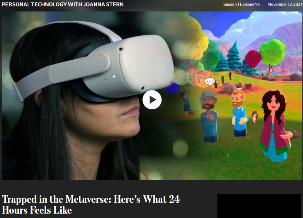 Regardez cette vidéo qui explique super bien le phénomène avec une journaliste qui s’est prêtée au jeu du métavers pendant 24 heures consécutives. Hallucinant, mais ça le mérite d’être clair (en anglais, mais super facile à suivre).