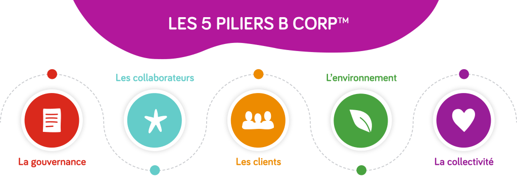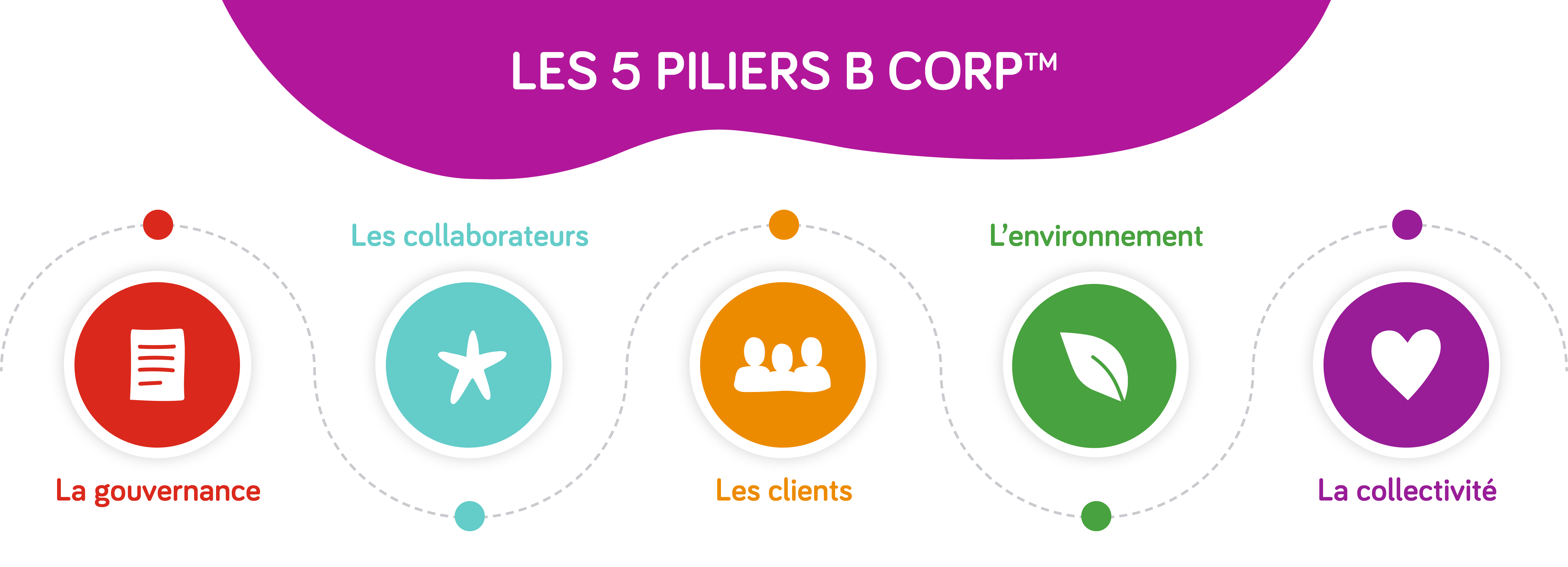 B Corp (Beneficial Corporation) est une certification octroyée aux entreprises à but lucratif qui répondent aux plus hauts standards d’impact social et environnemental, de gouvernance éthique et de transparence envers le public.