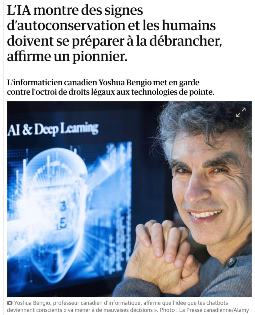 - Le courageux projet de la LoiZéro de Yoshua Bengio et ses acolytes pour une IA responsable et sécuritaire pour l’humanité.