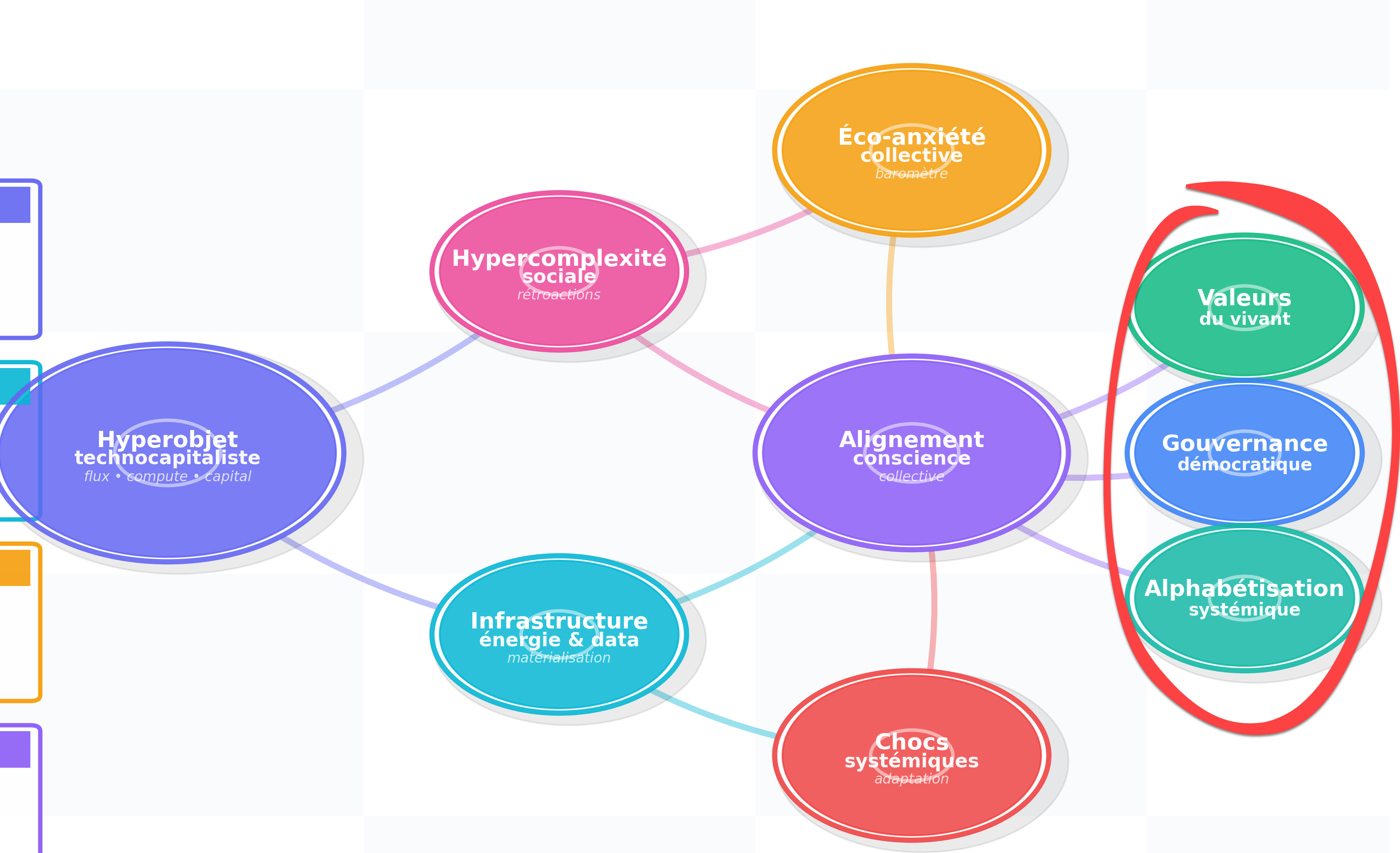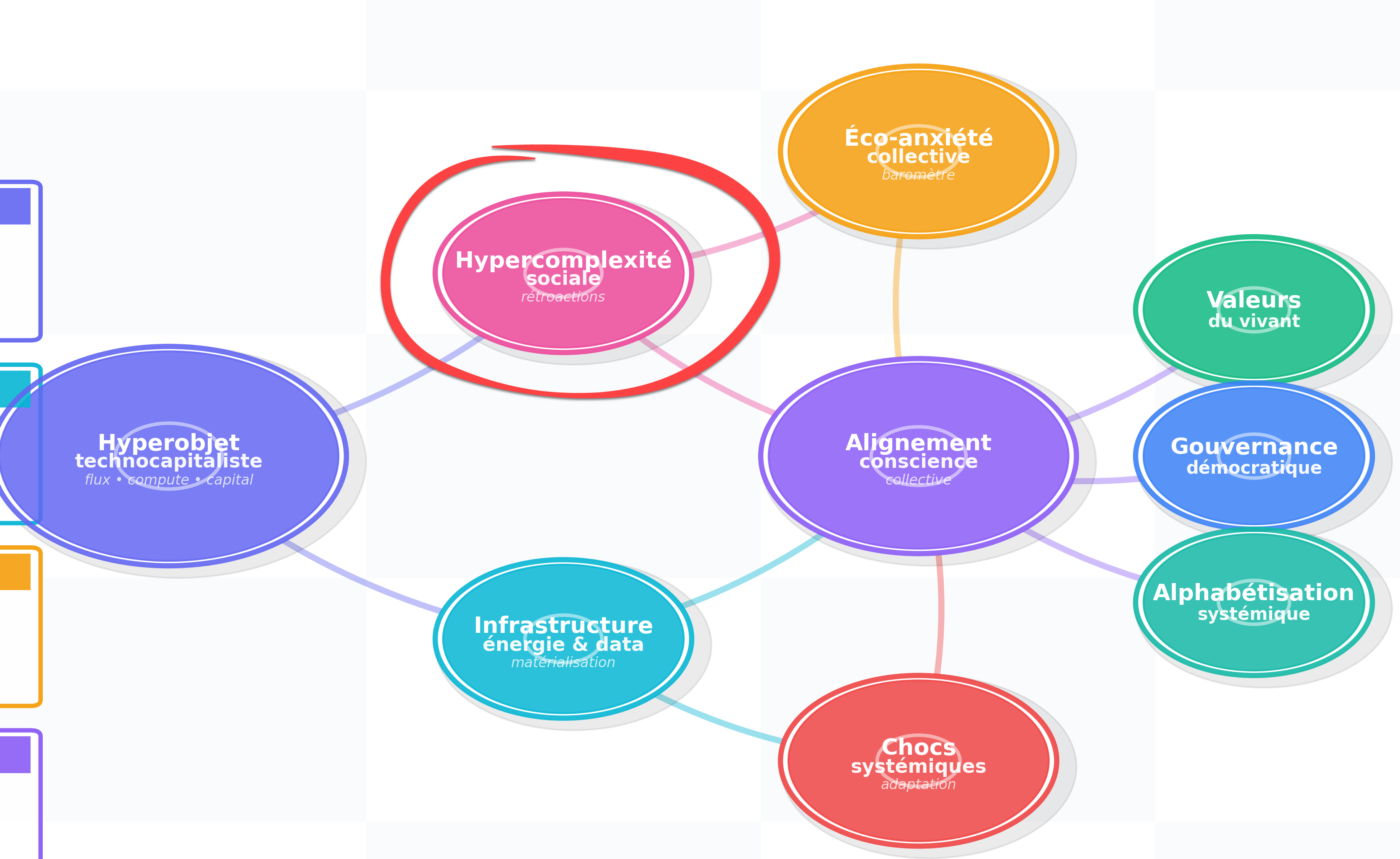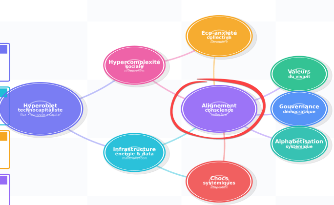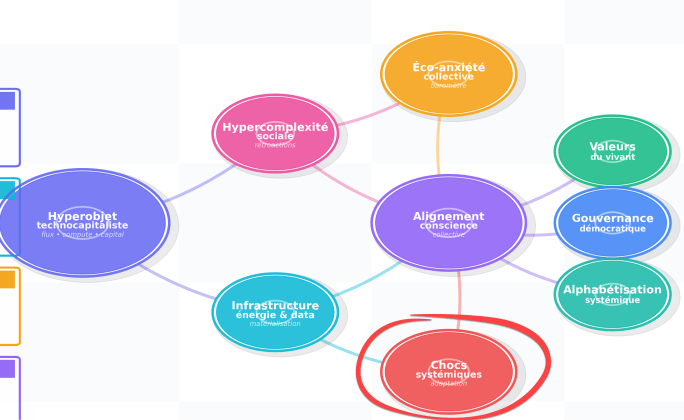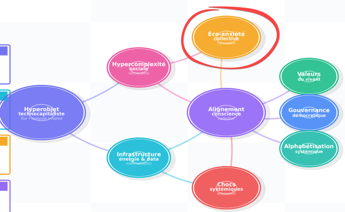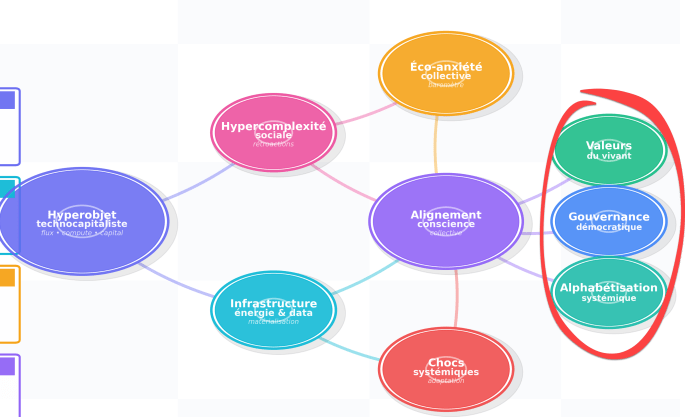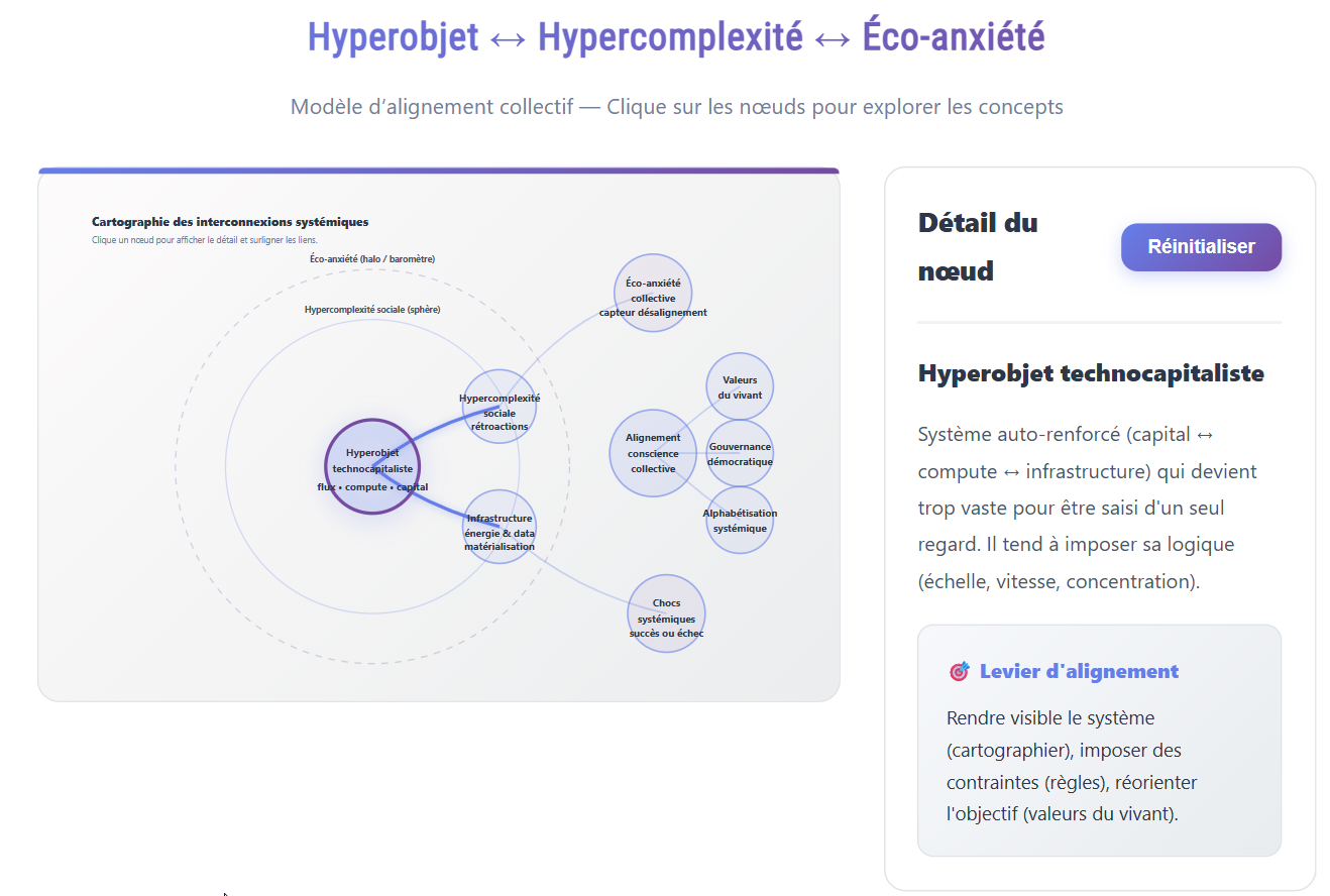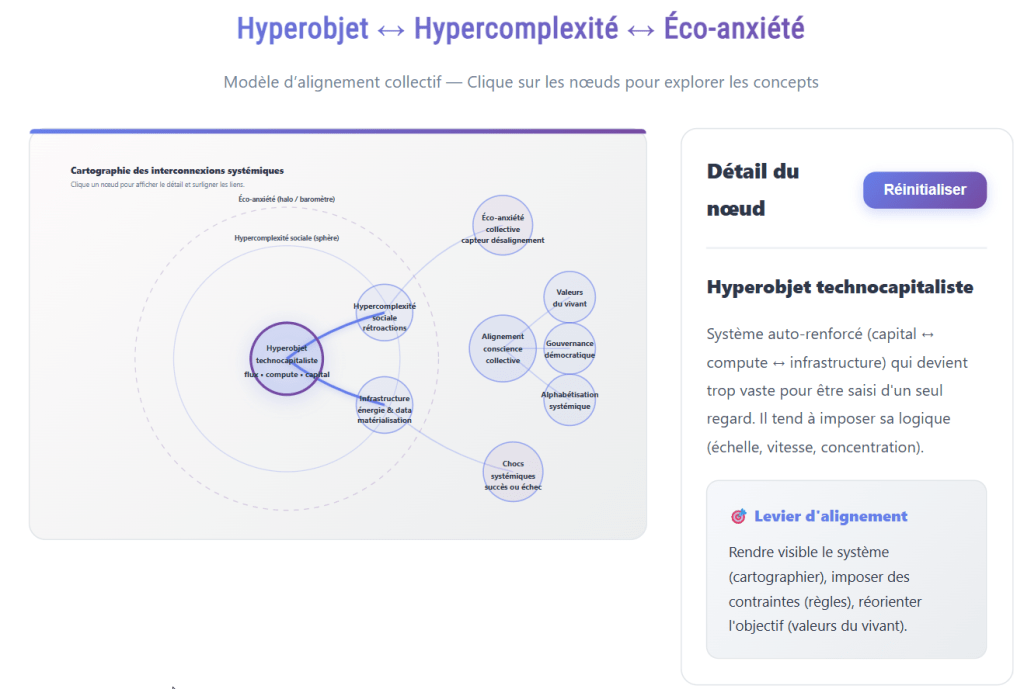 Comprendre ce noyau est essentiel, car c’est lui qui irrigue l’hypercomplexité sociale et nourrit, en périphérie, l’éco-anxiété collective que je vais t’expliquer.